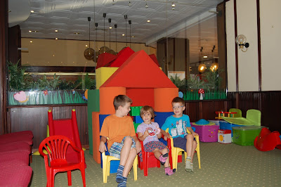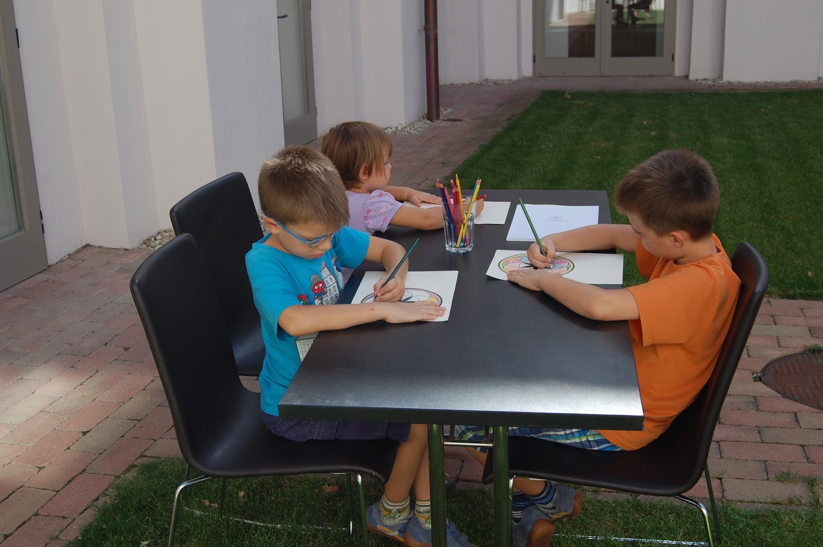 Mikor a srácaink megunták az étteremben való jólviselkedést, kimehettek a kertbe, ahol egy odakészített asztalon színezők várták őket. Neki is estek az alkotásnak, elkészült műveiket már ki is raktuk itthon.